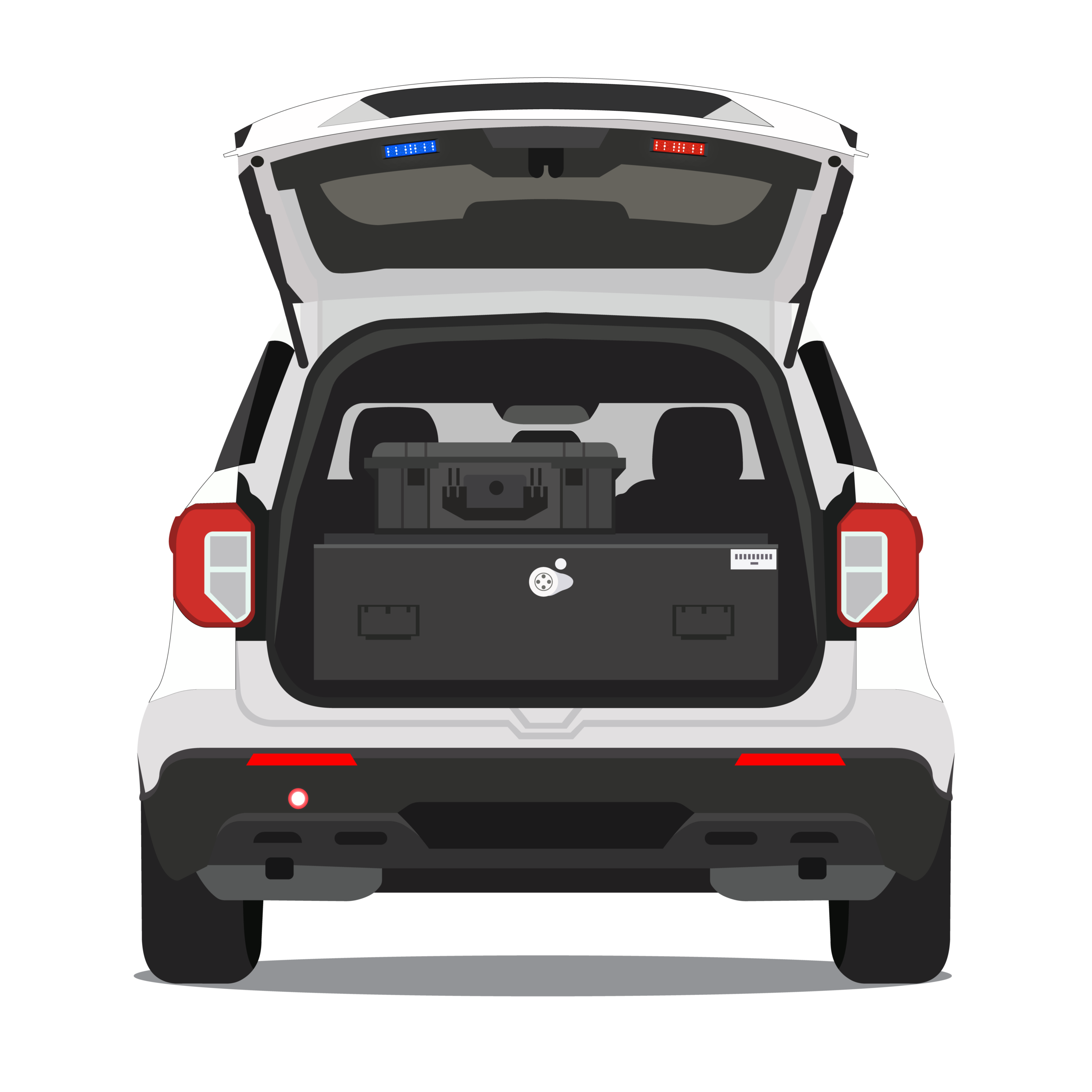 The K9 Commander is engineered specifically for K9 operations, combining full patrol-grade lighting and siren systems with dedicated rear-compartment K9 equipment to protect both handler and canine.